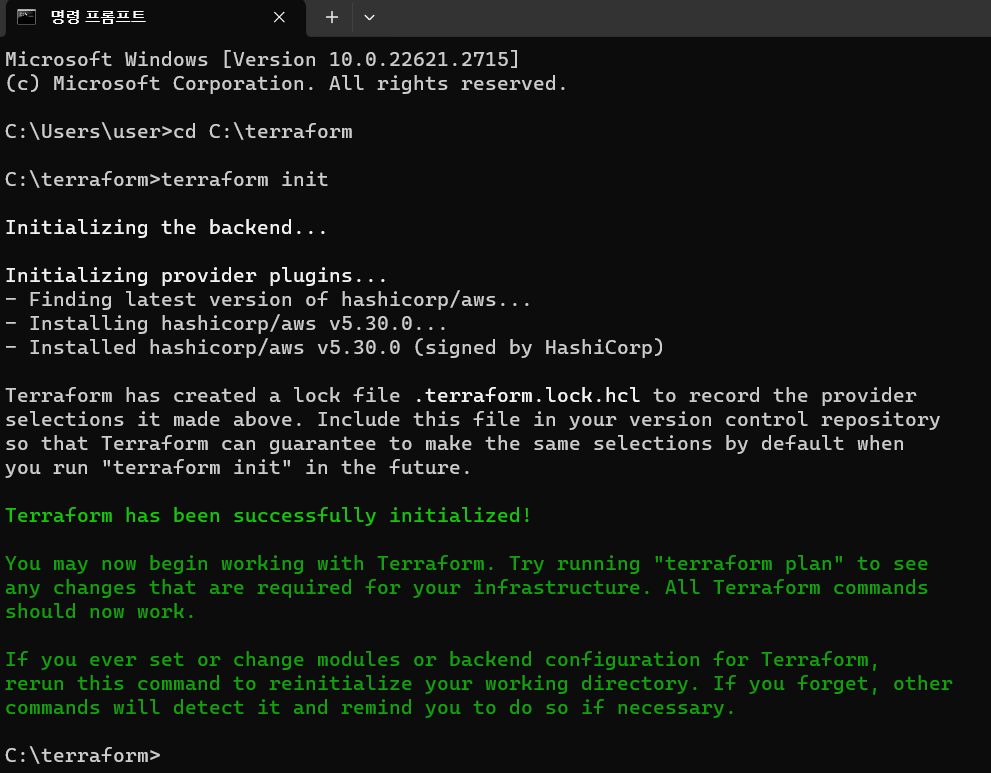- Backend 초기화: Terraform 상태 파일을 저장하고 관리할 백엔드를 설정합니다.