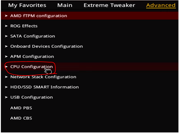 [Advance] - [CPU Configuration]을 들어가 SVM Mode를 enable 해주면 된다.
