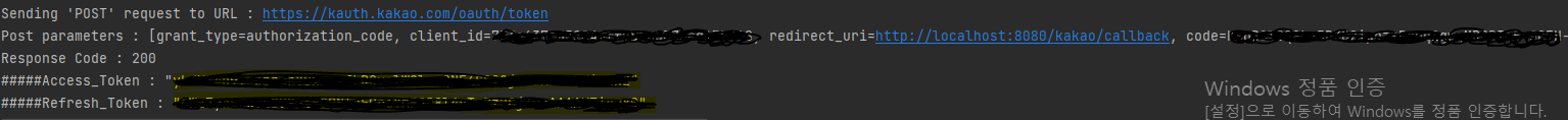 결국 다음과 같이 코드를 받고 토큰과 사용자 정보를 성공적으로 가져올 수 있었다.